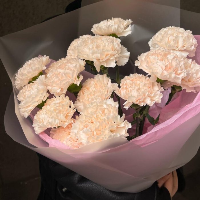 Букет 25: монобукет из кремовых гвоздик