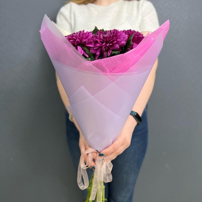 Хризантема одноголовая – 5 шт.Крафт упаковка – 1 шт.