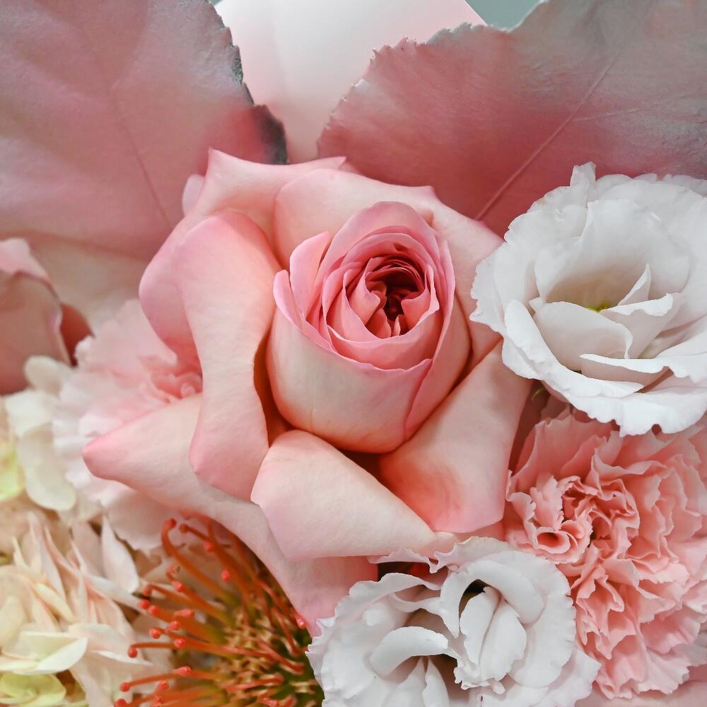 Альстромерии, Гвоздики, Кустовые розы, Лизиантусы, Розы, Хризантемы